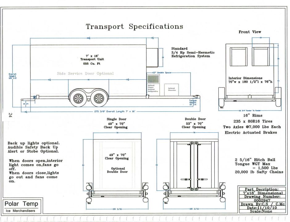 | POLAR TEMP 7X16 AD W/TRAILER SPECS | |